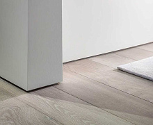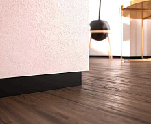 Особенности монтажа: Уложите ламинат так, чтобы его край заходил под будущий профиль, но не упирался в стену. Нанесите «жидкие гвозди» зигзагом на тыльную сторону профиля. Приклейте профиль к ровной стене прямо поверх ламината. Заштукатурьте верхнюю кромку профиля, чтобы она слилась со стеной. Зашпаклюйте и покрасьте стену как обычно.